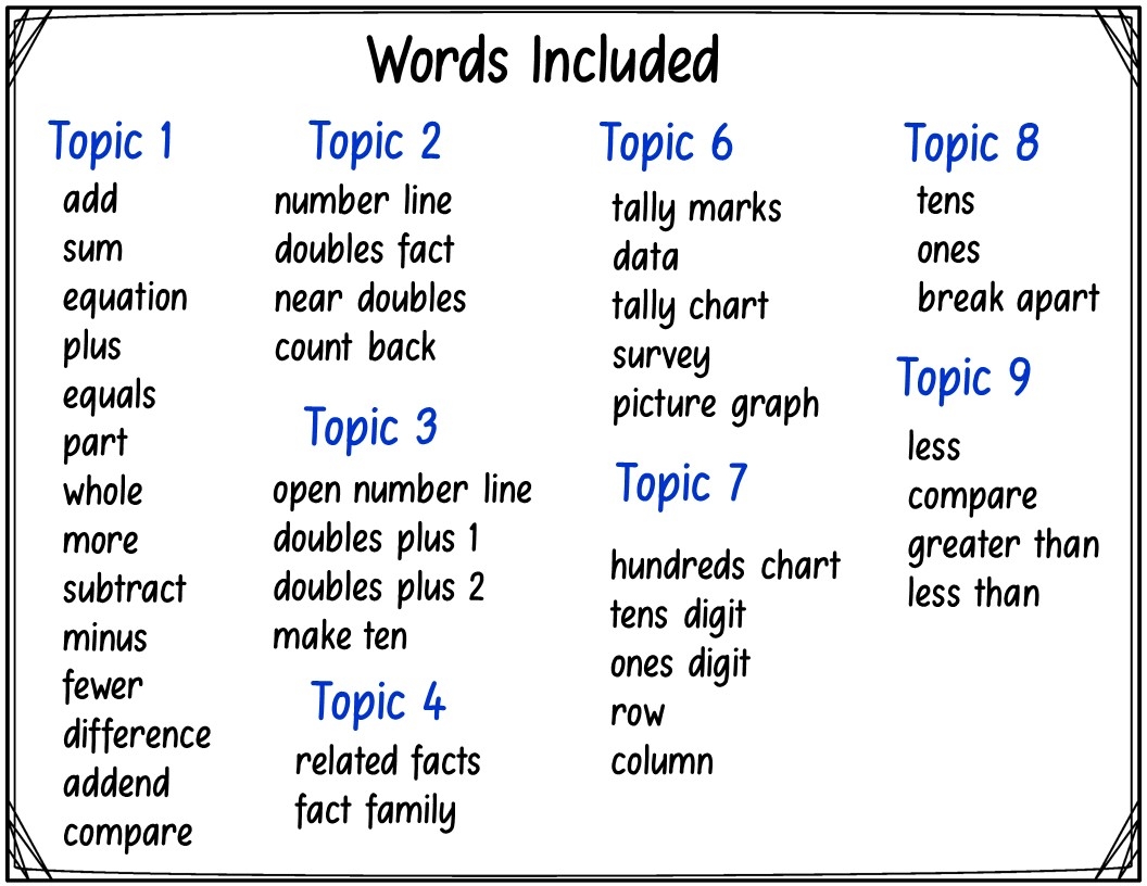 Envisions 2 0 Math Vocabulary Cards For 1st Grade