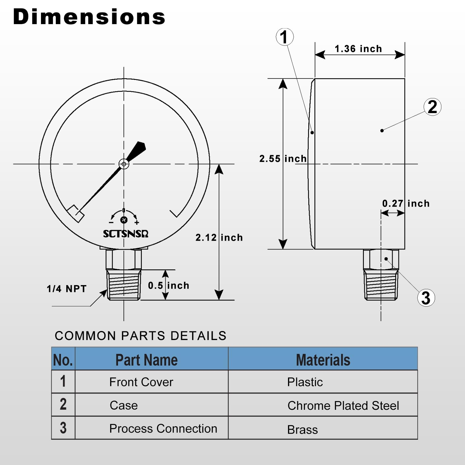Amazon SCTSNSR 0 To 15 Inches Of Water Column Pressure Gauge Capsule Measurement System 2 5 Inch Dial 1 4